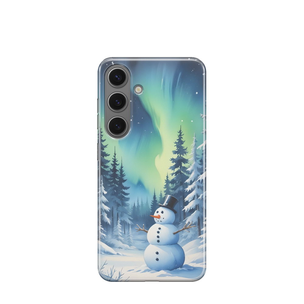 Samsung Galaxy S24 Gummi Hülle Nordlicht Schneemann - Türkis