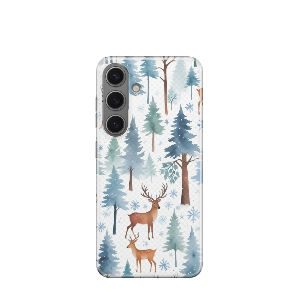 Samsung Galaxy S24 Gummi Hülle Schneehirsche - Blau / Gelb / Rot