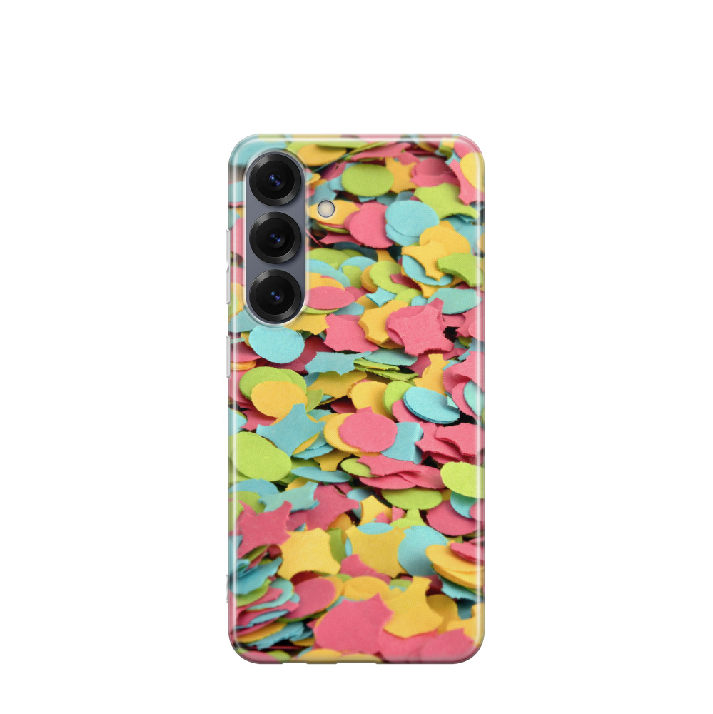 Samsung Galaxy S25 Gummi Hülle Konfettipracht - Blau / Gelb / Rot