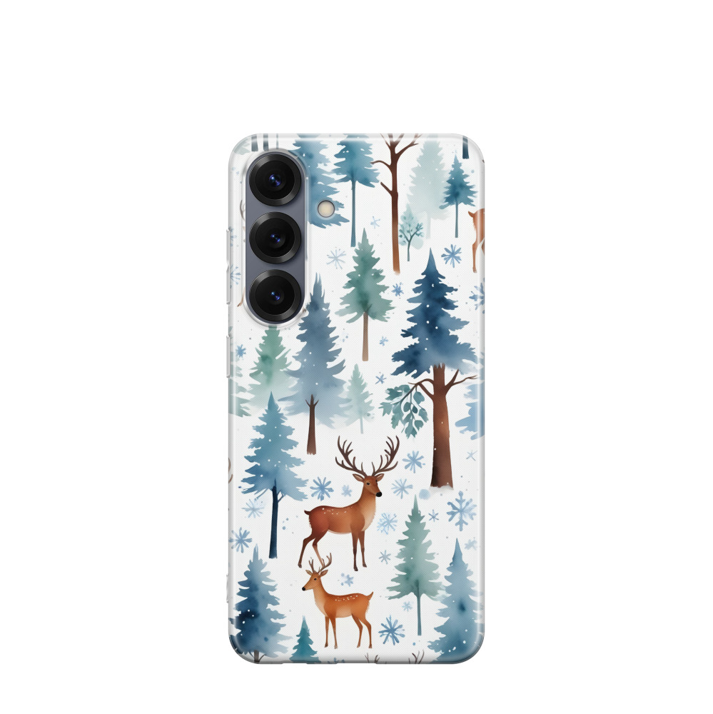 Samsung Galaxy S25 Gummi Hülle Schneehirsche - Blau / Gelb / Rot