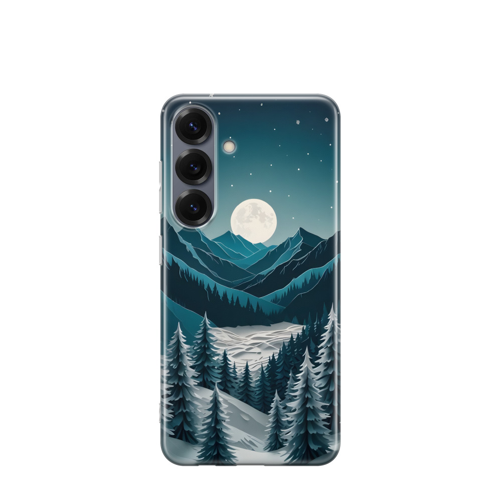 Samsung Galaxy S25 Gummi Hülle Winternacht in den Bergen - Schwarz