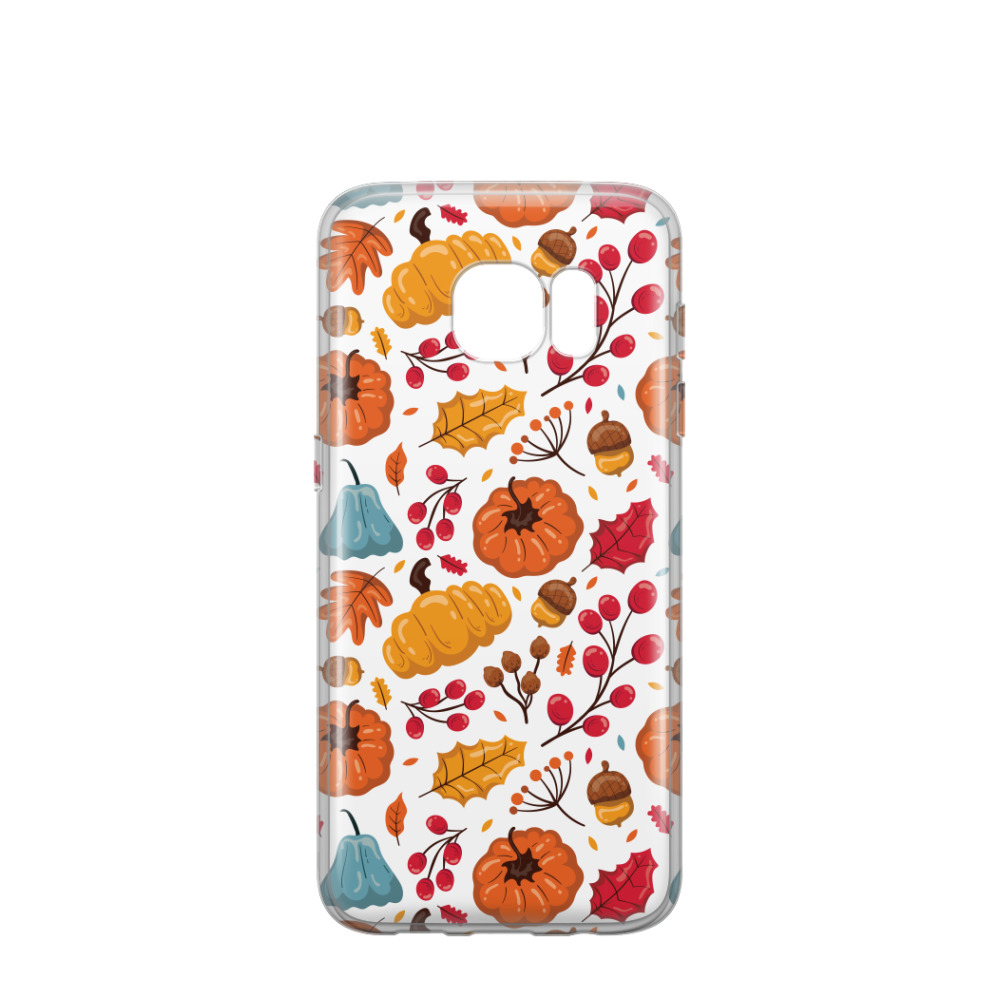 Samsung Galaxy S7 Gummi Hülle Laub und Kürbisse - Orange