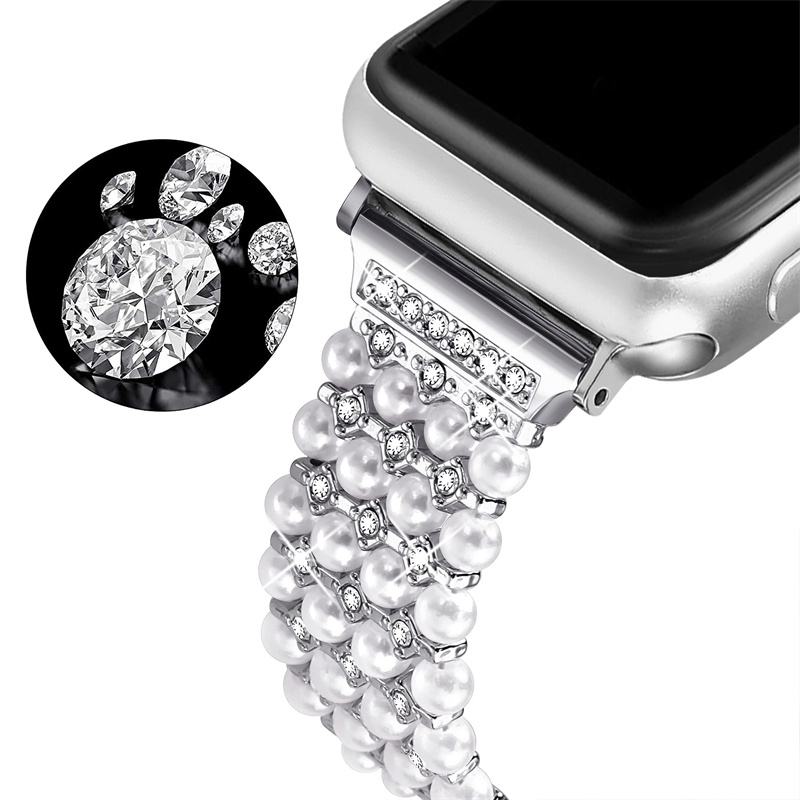 Apple Watch Series (42/41/40/38 mm) brille perles bracelet en acier inoxydable - Argent