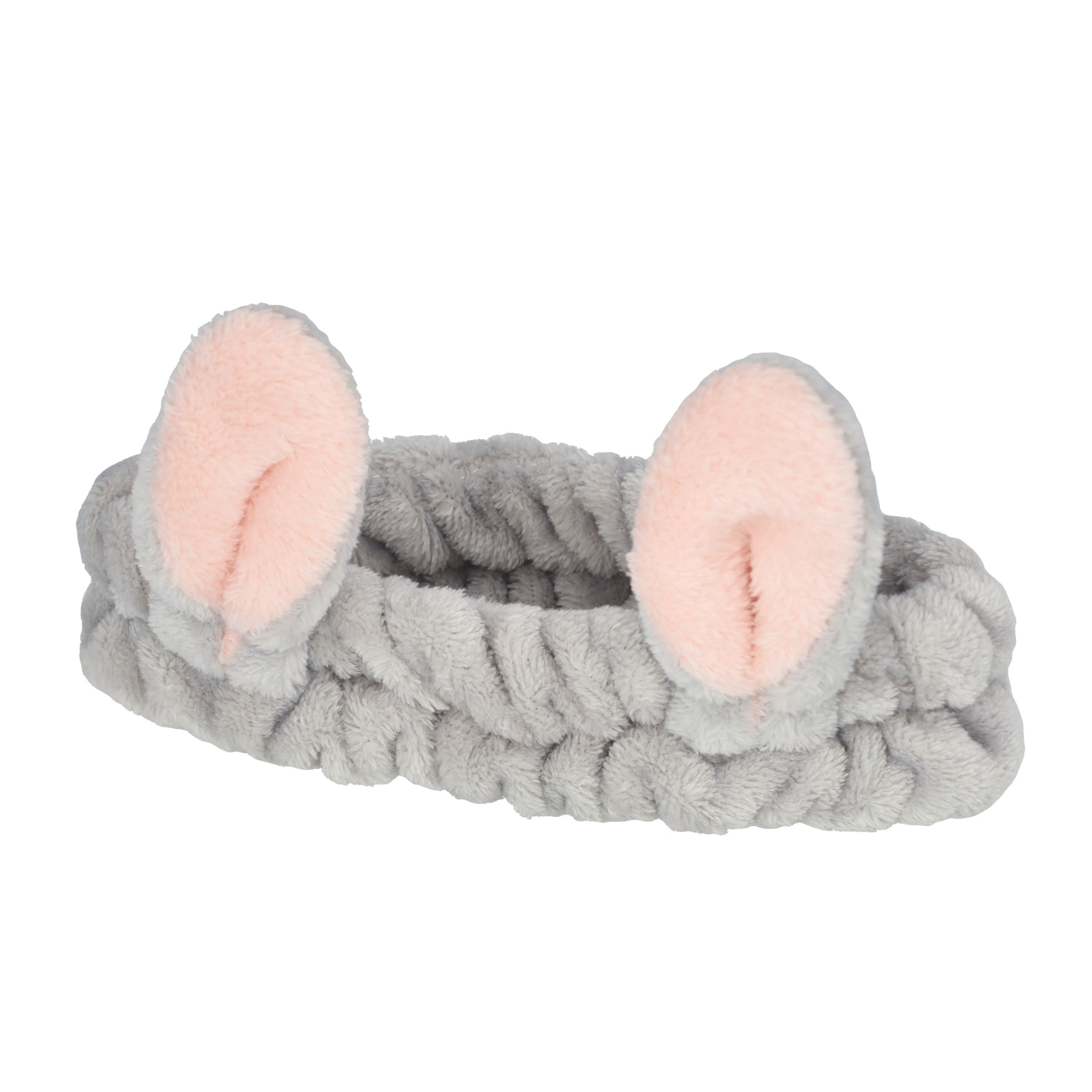 Bandeau pour cheveux en peluche élastique pour les soins du visage Spa Bandeau (One Size) Oreilles de lapin - Gris
