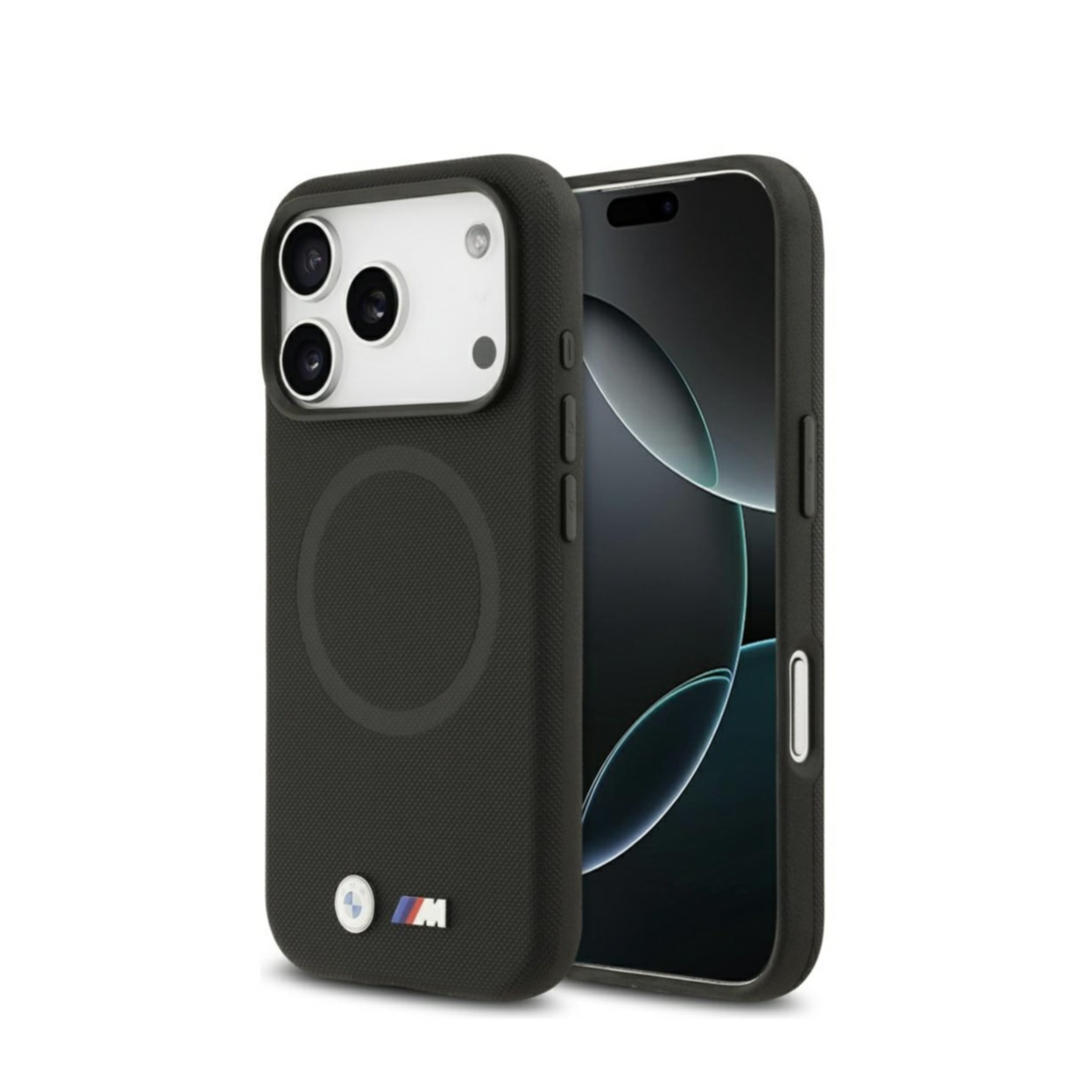 Cette coque haut de gamme est ornée de l'emblème BMW M au dos du cuir. Des découpes précises pour les boutons et l'appareil photo permettent de garder l'iPhone 17 Pro accessible et utilisable.