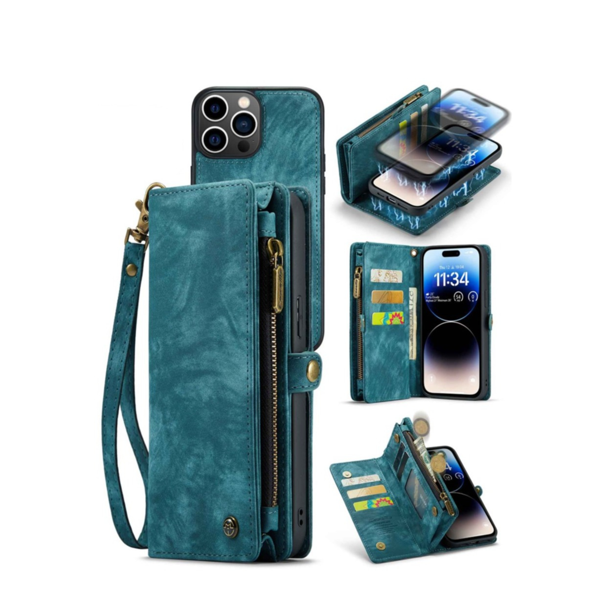 Portefeuille en cuir 2en1 avec 10 emplacements pour cartes