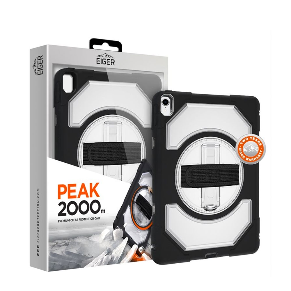 iPad Pro 11" (2018) Peak 2000m Housse hybride rigide d'extérieur avec support + dragonne et bandoulière (EGPE00102) - Noir / Transparent