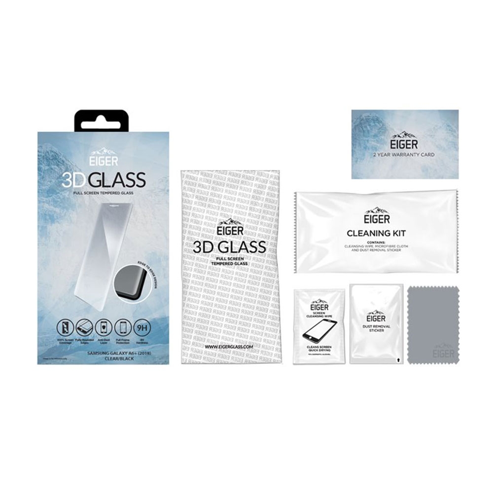 1 x Eiger - Samsung Galaxy A6 Plus (2018) plein écran en verre 3D Film de protection d'écran avec cadre (EGSP00267) - Noir