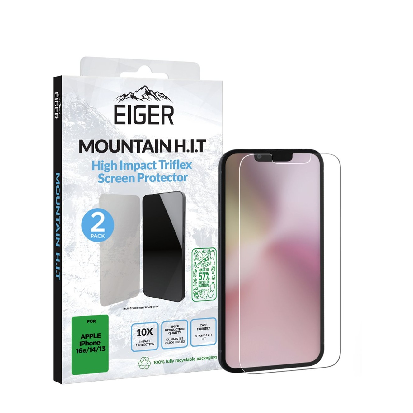 2 x Eiger - iPhone 16e / 14 / 13 Mountain H.I.T High Impact Triflex verre blindé