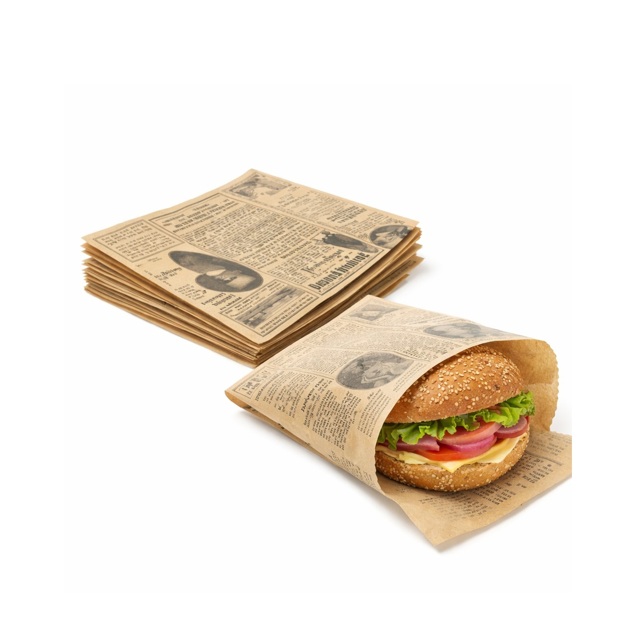 (Set de 1000) 17x18cm sac à burger en parchemin jetable PARTY sac à snacks papier journal pour hamburger / kebab (6441.3005) - Marron