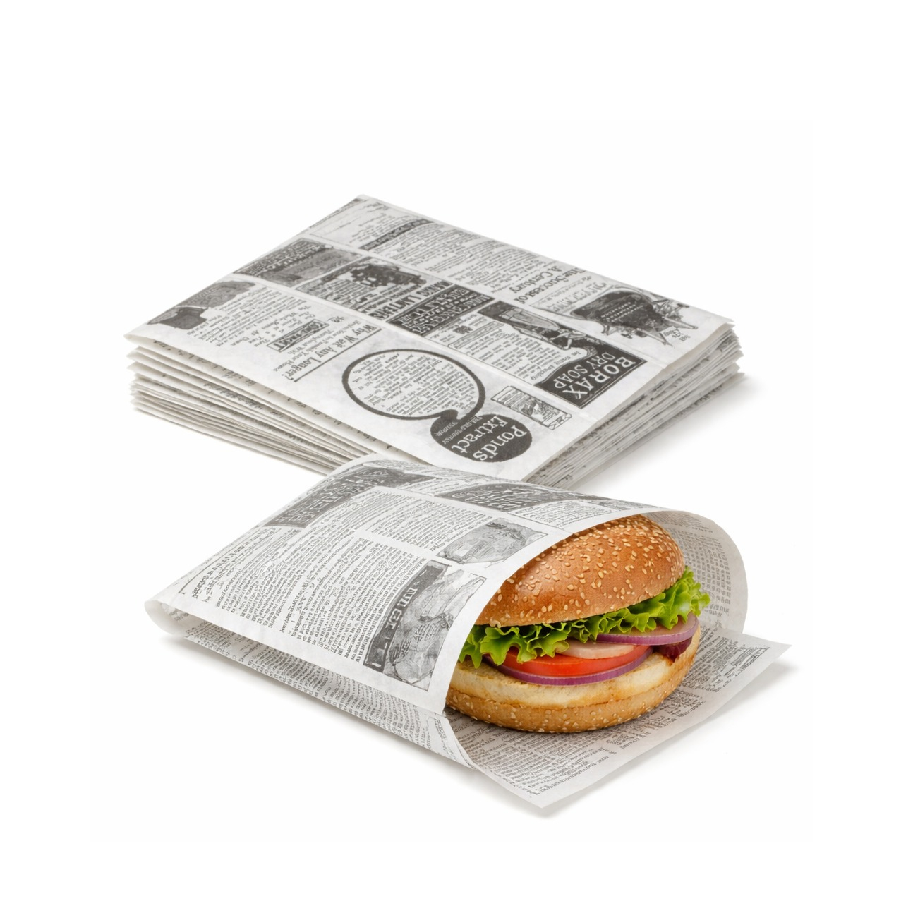 (Set de 500) 17x18cm sacs à burger en parchemin jetables PARTY sac snack papier journal pour hamburger / kebab (6441.6008) - Blanc