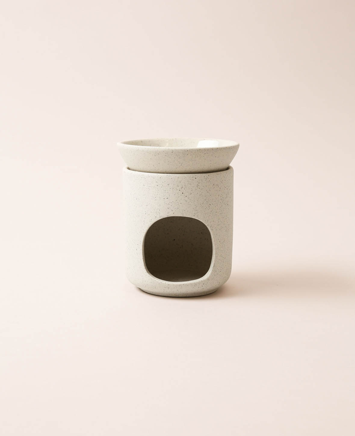 (Ø11.5x13.5cm) Lampe à parfum en faïence Bougie à chauffe-plat Diffuseur de parfum - Beige