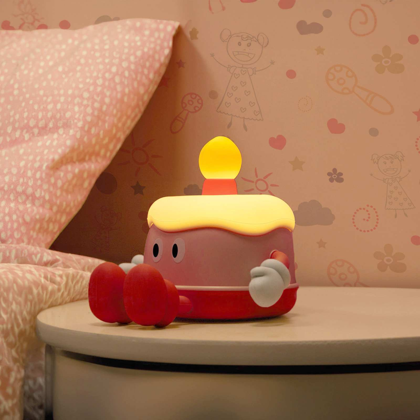 Avec la lumière de nuit en silicone de Fisura, tu apportes une lumière joyeuse et de la bonne humeur dans la chambre d'enfant. La lampe ludique au design de gâteau enthousiasme petits et grands - un doux accroche-regard sur chaque table de nuit ! Grâce à sa matière silicone douce, elle est particulièrement adaptée aux enfants et sa douce lueur crée une atmosphère apaisante pour s'endormir.