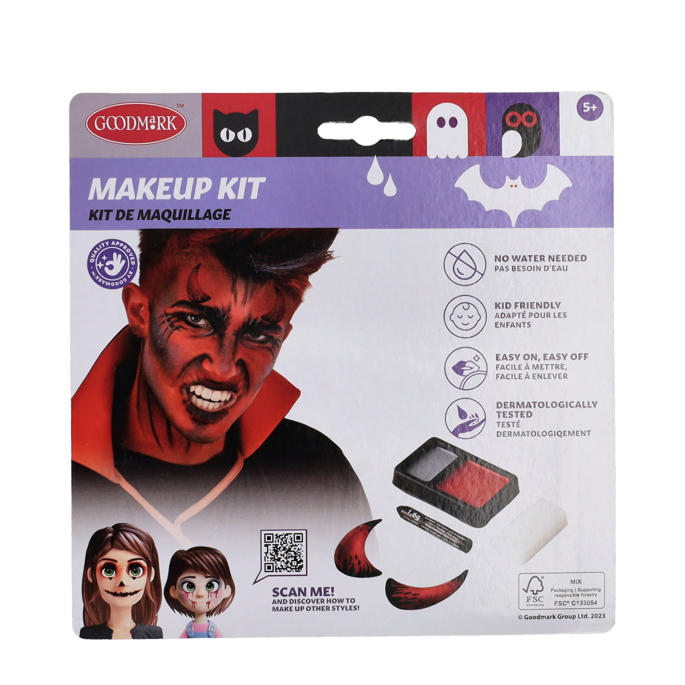 Transforme ton visage en un diable effrayant en un clin d'œil avec le Kit Make Up Diable de Goodmark. Ce kit de 5 pièces contient tout ce dont tu as besoin pour un look de diable impressionnant, idéal pour Halloween, le carnaval, les fêtes à thème ou toute autre occasion où tu veux te faire remarquer. Les couleurs grasses sont faciles à appliquer et offrent un haut pouvoir couvrant pour un résultat durable.
