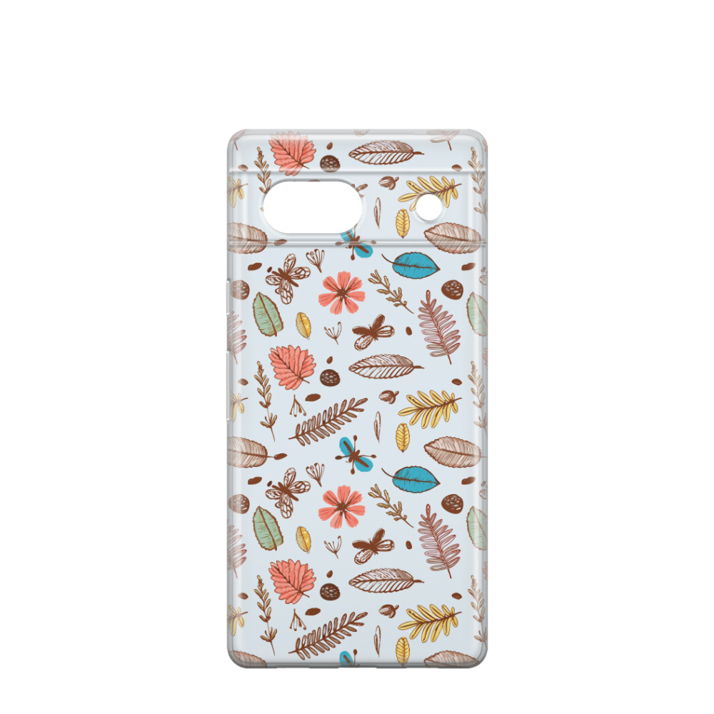 Google - Google Pixel 7a coque en caoutchouc Fleurs d'automne 03 - Bleu / Jaune / Rouge