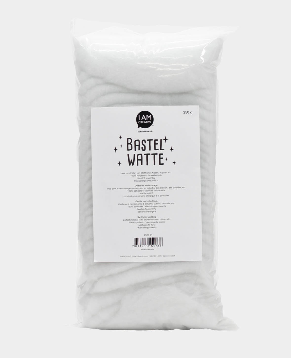Grâce à la ouate de polyester de haute qualité, ta création reste élastique et conserve toujours sa forme. Un autre avantage est que la ouate est lavable à 40°C. Tu peux donc être sûr que tes travaux manuels resteront toujours frais et propres. La ouate de bricolage est en outre hypoallergénique à la poussière, ce qui garantit le plaisir de bricoler même aux personnes allergiques.