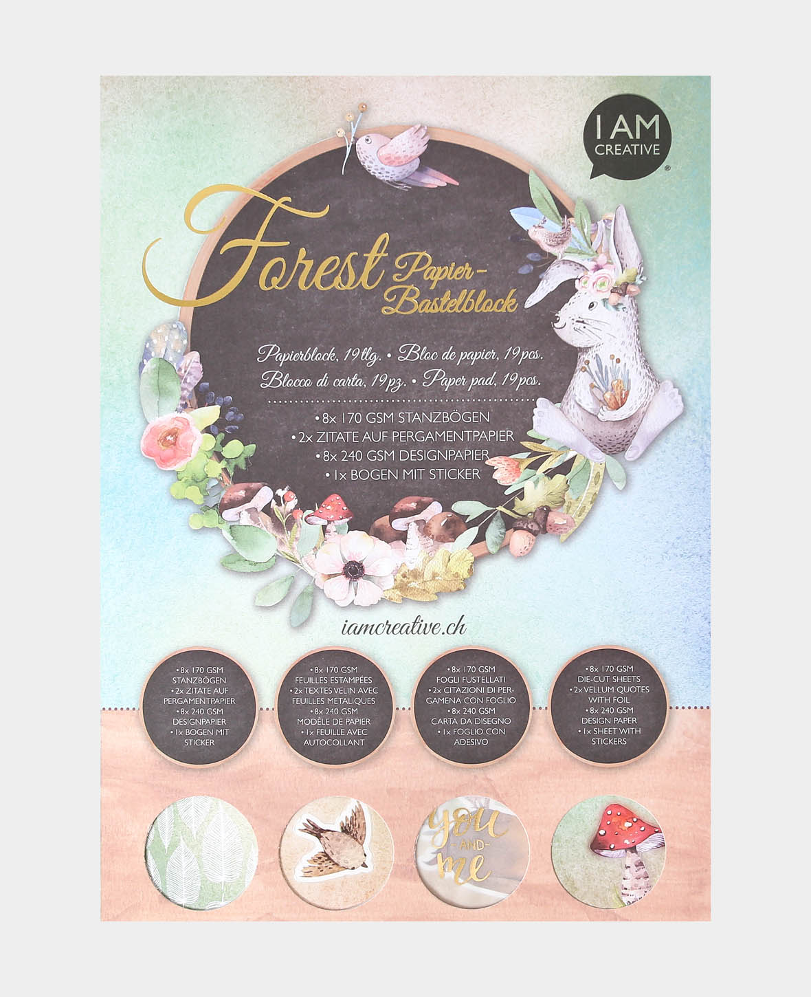(Set de 19 pièces) Bloc de papier pour travaux manuels avec feuilles de découpe / papier parchemin et papier design / stickers - Forest