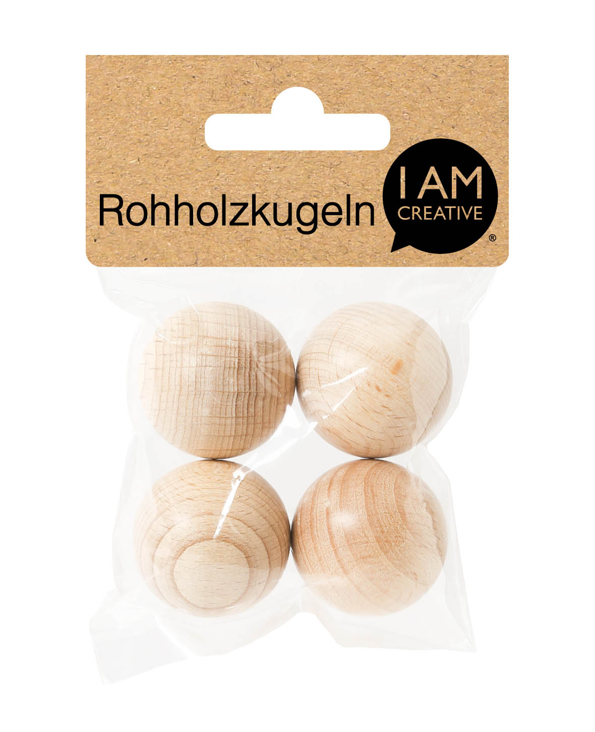 (set de 4) boules en bois brut Ø30mm perles en bois sans perçage DIY accessoires de bricolage - naturel