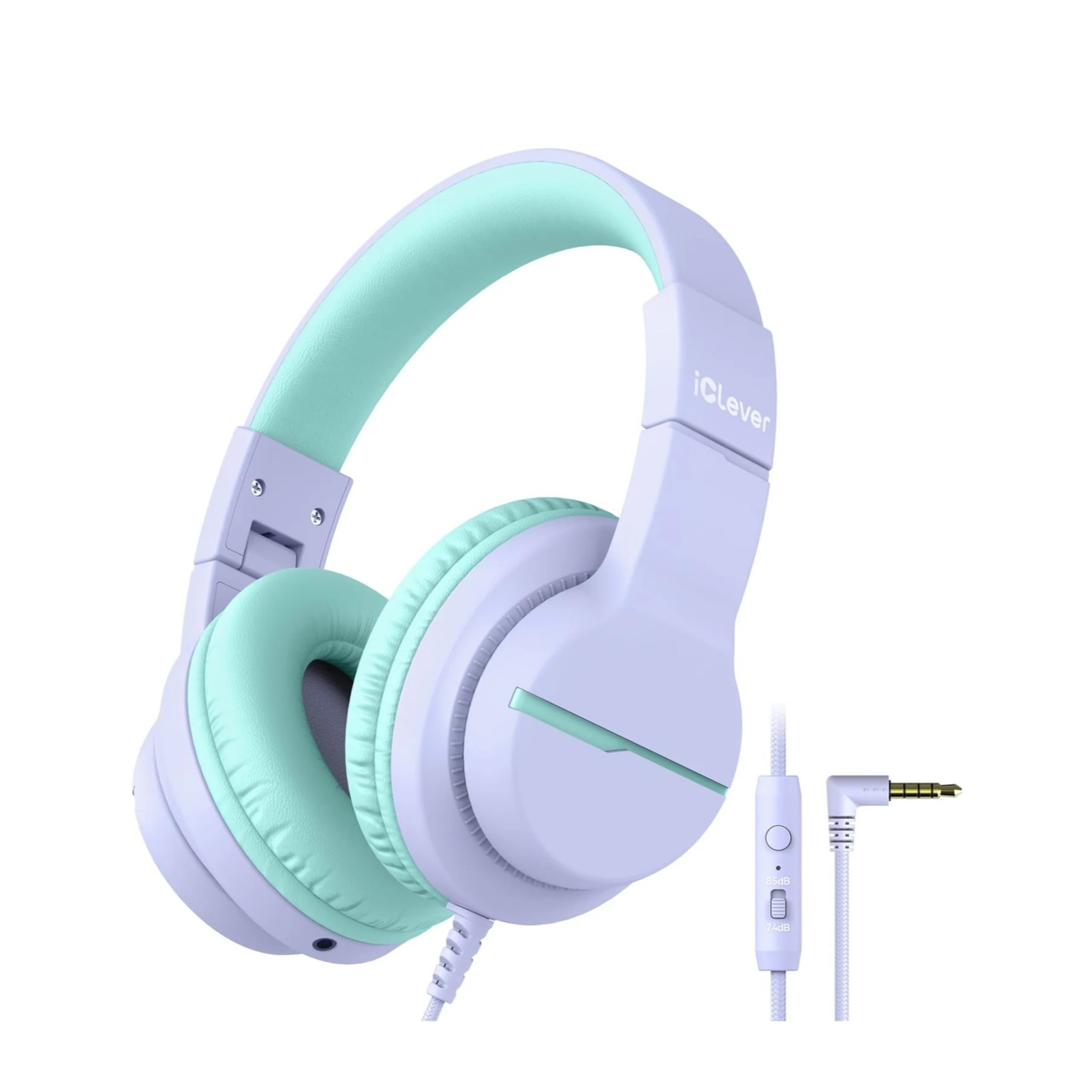 BTH12 Headphone Kids LED Casque 3.5mm jack Over-Ear 74/85dB Réglages du volume (C01-1702N-23) - Violet / Turquoise