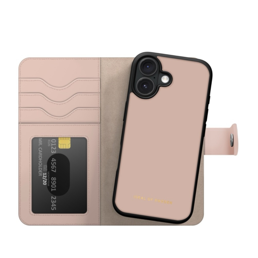 iPhone 16 Étui en cuir 2en1 + coque MagSafe Slim Magnet Wallet+ (IDMWPMS-I2461-51) - Rose