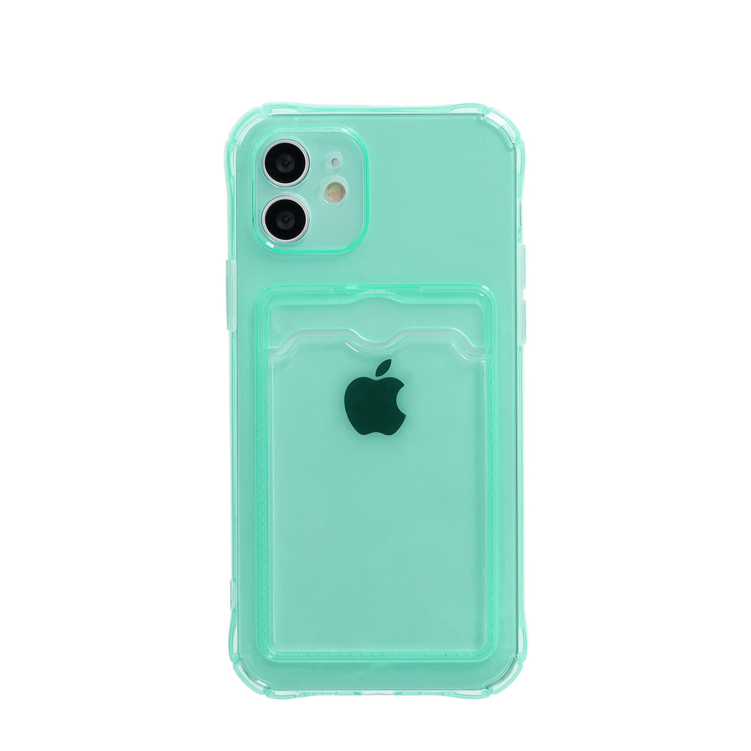 iPhone 12 Coque en caoutchouc avec porte-carte + coussin d'air anti-chute - Vert / Transparent