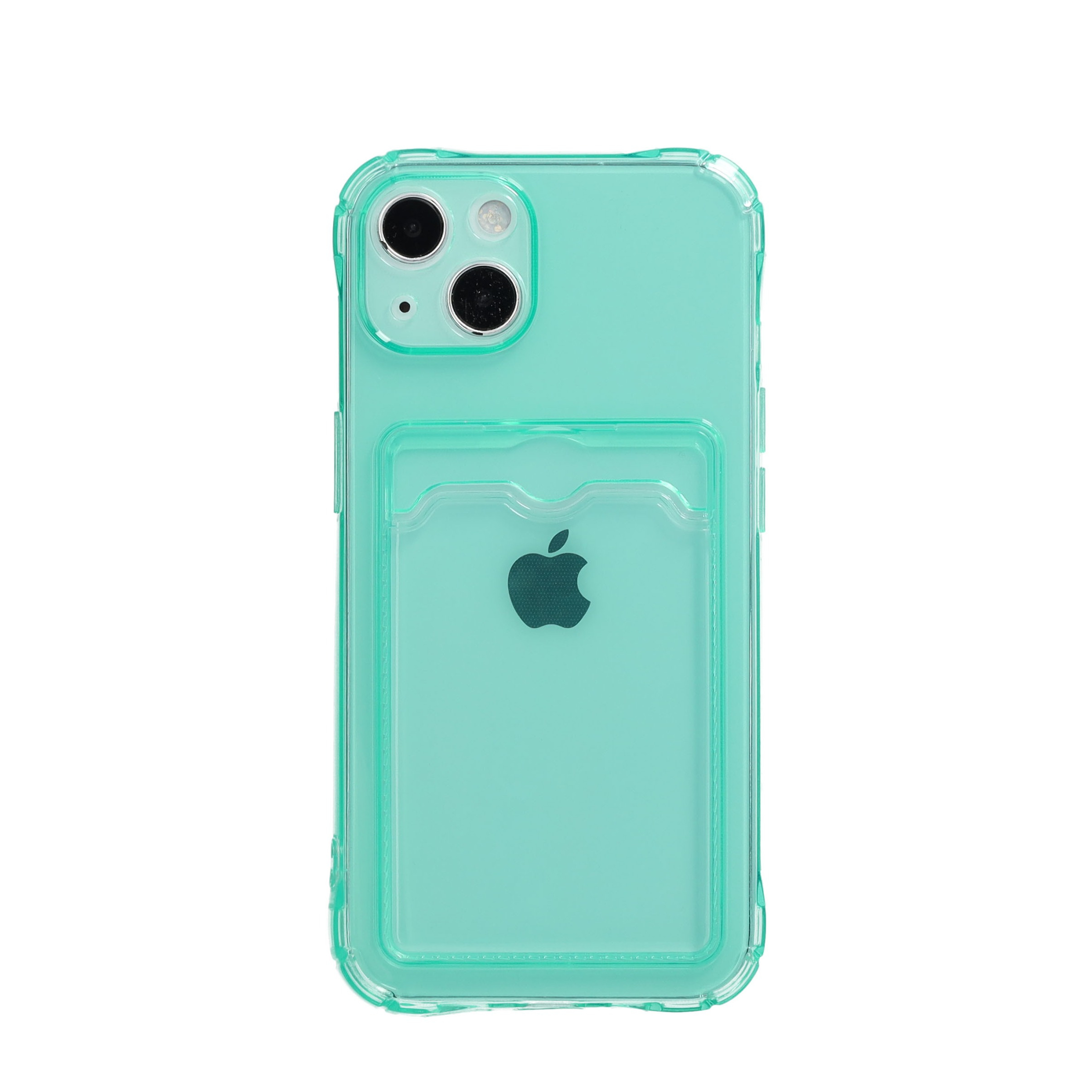 iPhone 13 Coque en caoutchouc avec porte-carte + coussin d'air anti-chute - Turquoise / Transparent