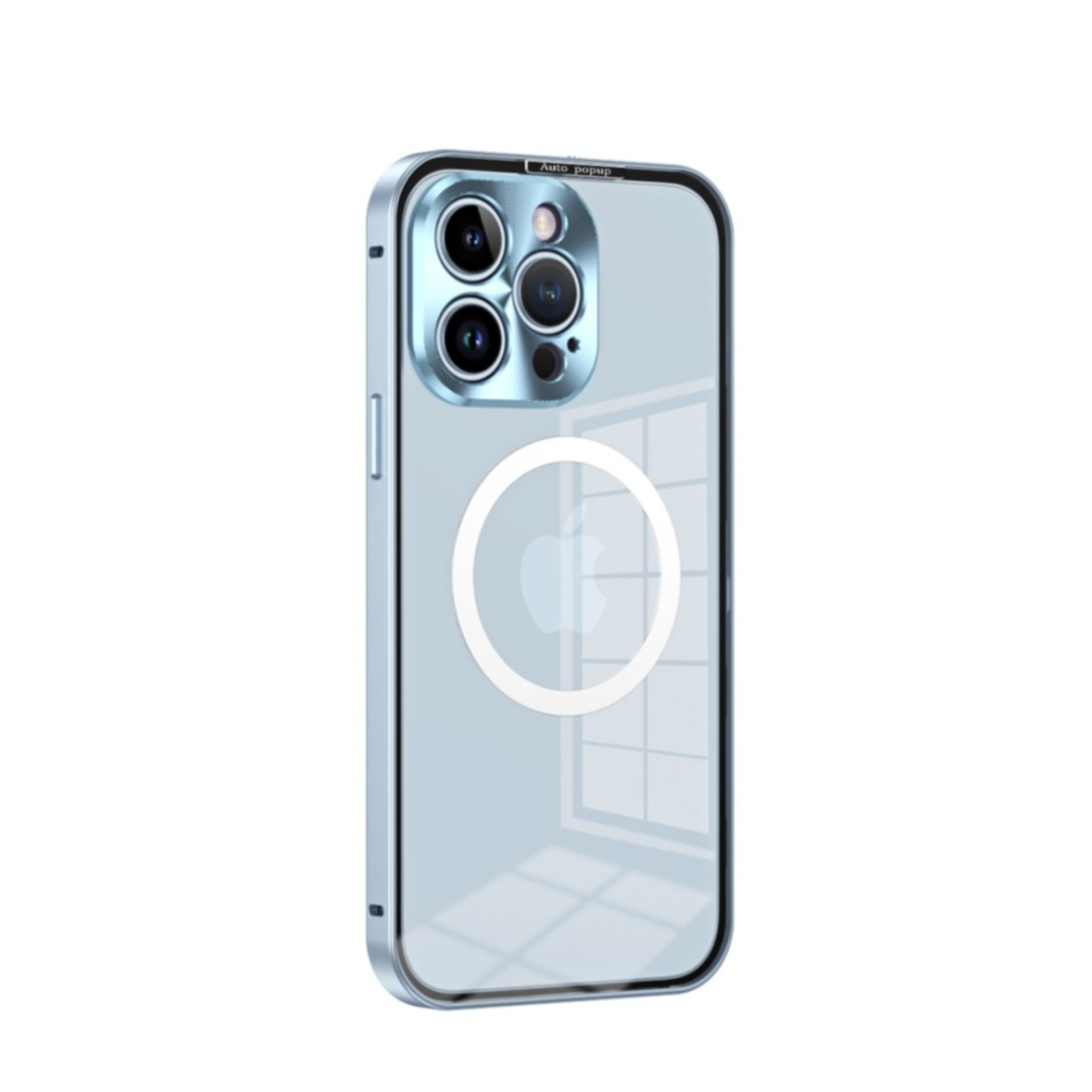 iPhone 13 Pro Coque en aluminium MagSafe avec Verre trempé Backcover + protection de caméra - Bleu
