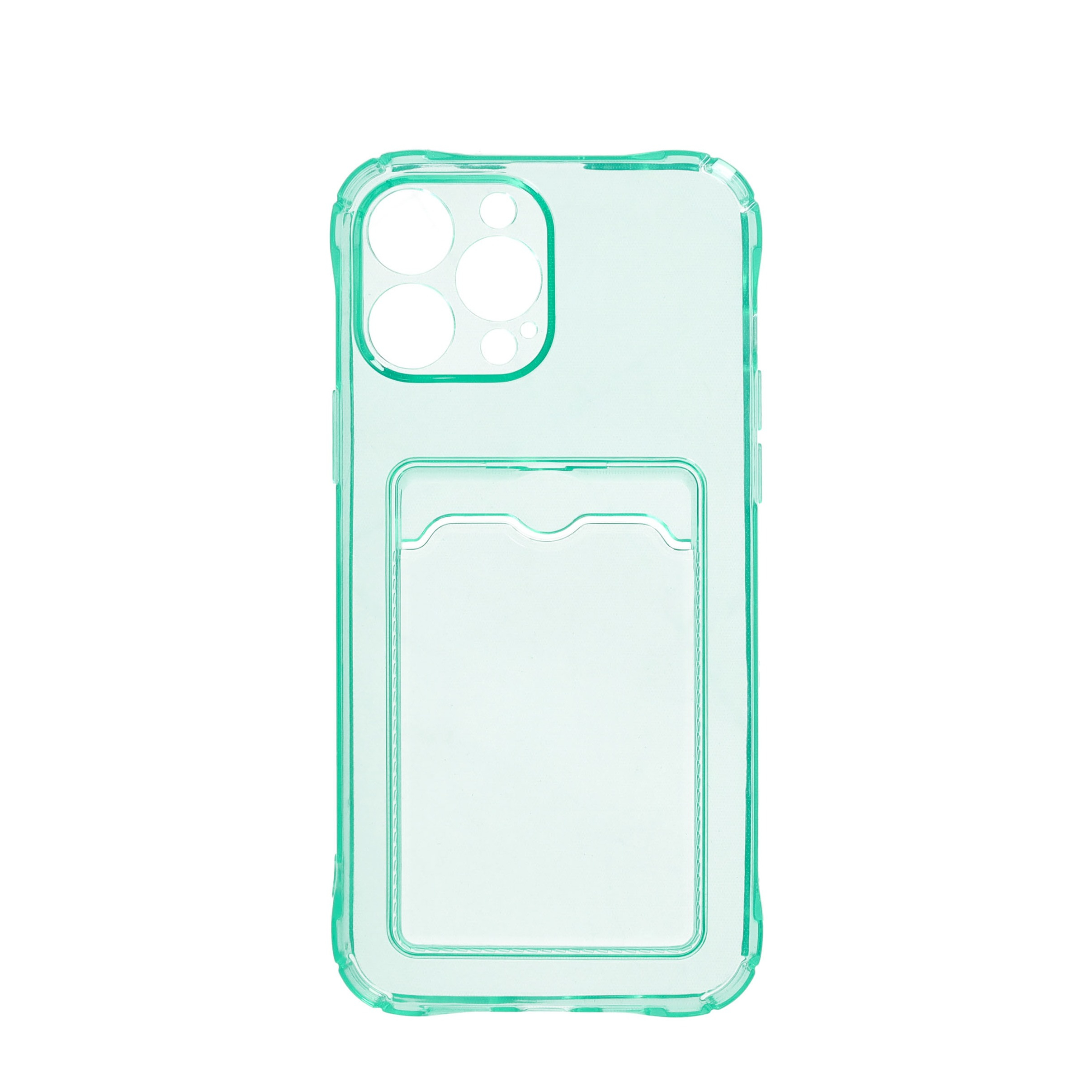 iPhone 13 Pro Etui en caoutchouc Max avec porte-carte + coussin d'air anti-chute - Turquoise / Transparent