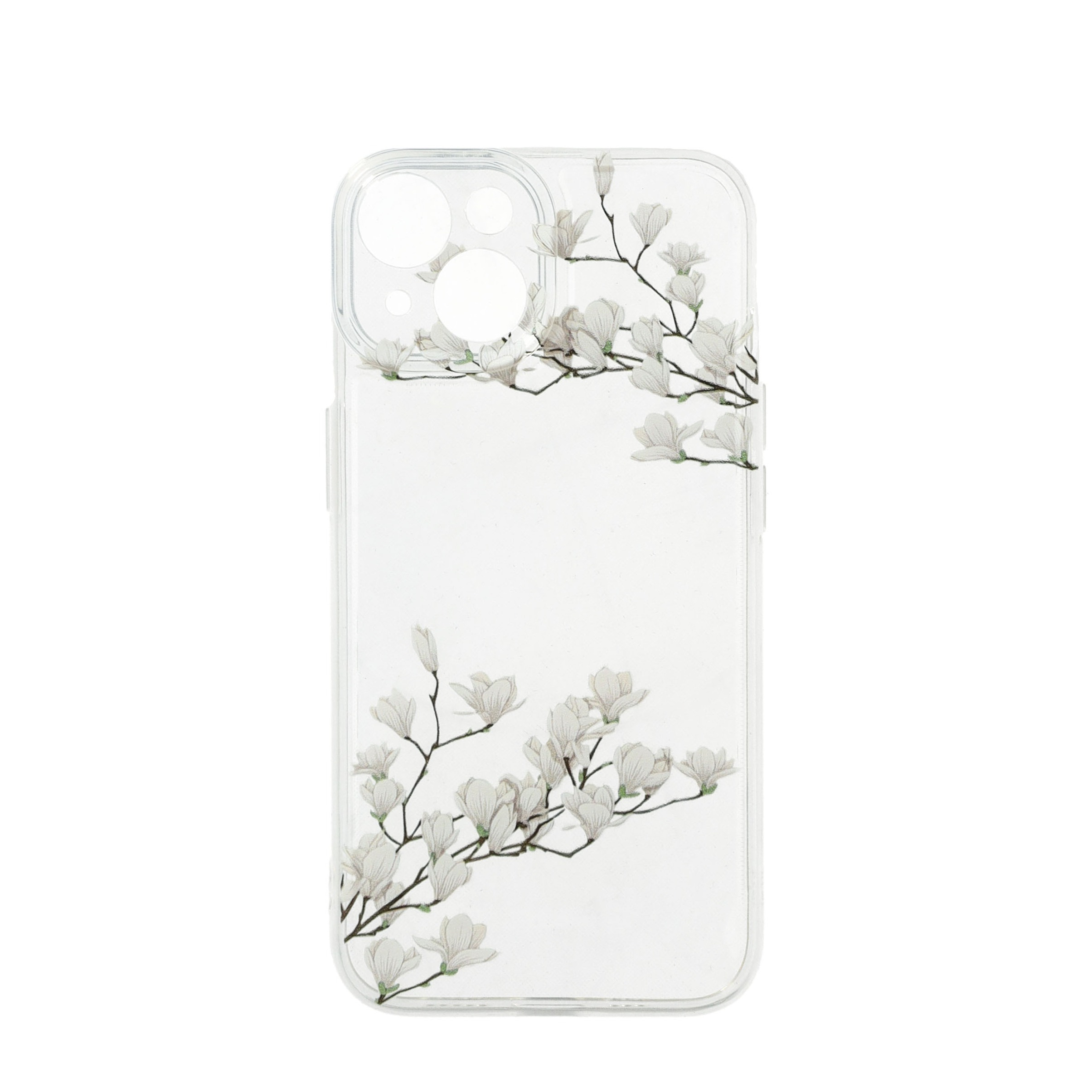 iPhone 14 coque en caoutchouc en protection de caméra - Fleurs blanches