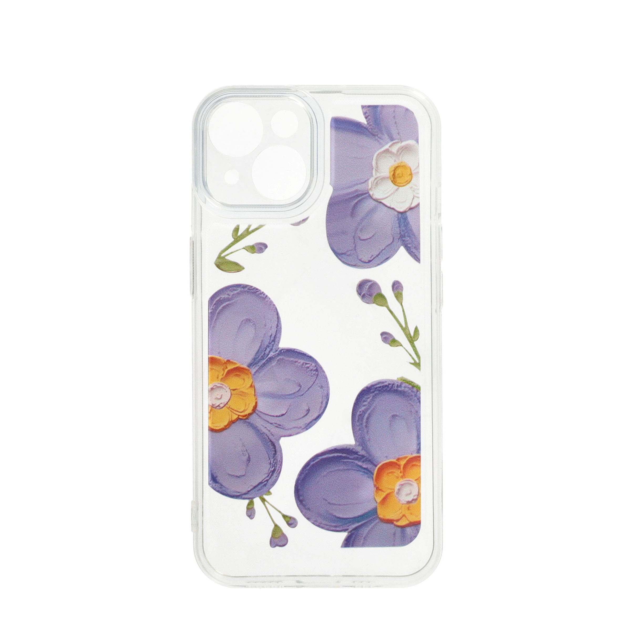 iPhone 14 coque en caoutchouc en protection de caméra - Fleurs violettes