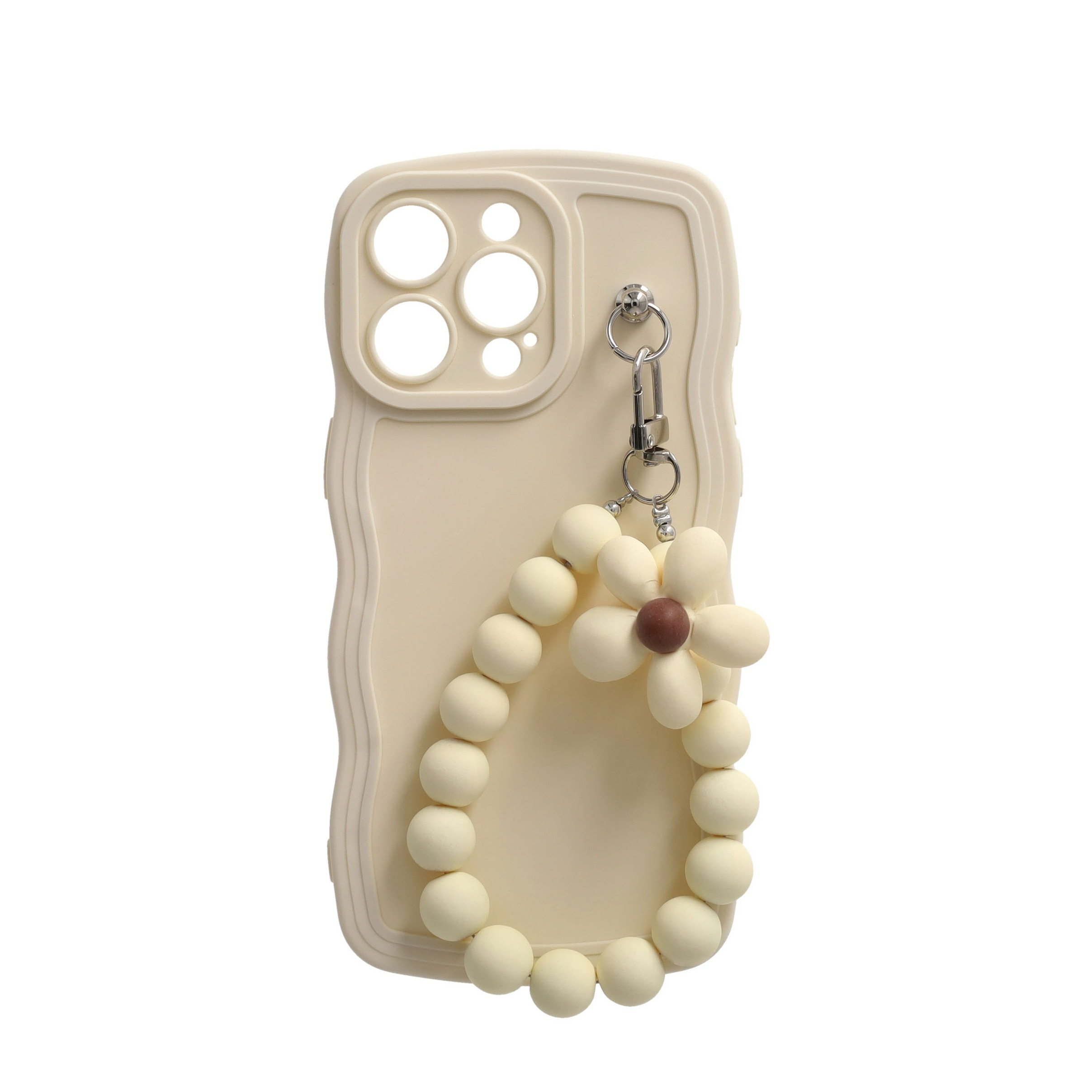 iPhone 15 Pro Max Pro Max coque en caoutchouc avec dragonne + protection de caméra - Fleur