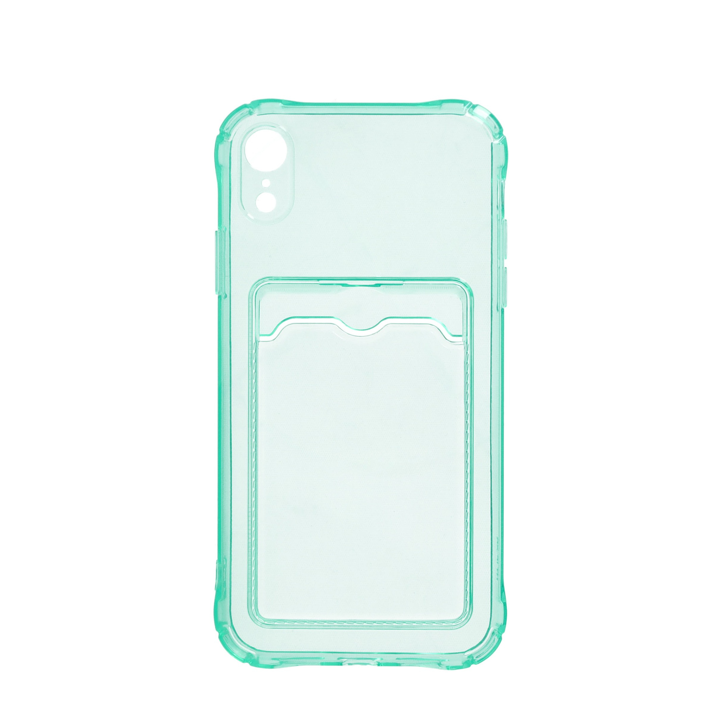 iPhone Xr Coque en caoutchouc avec porte-carte + coussin d'air anti-chute - Vert / Transparent