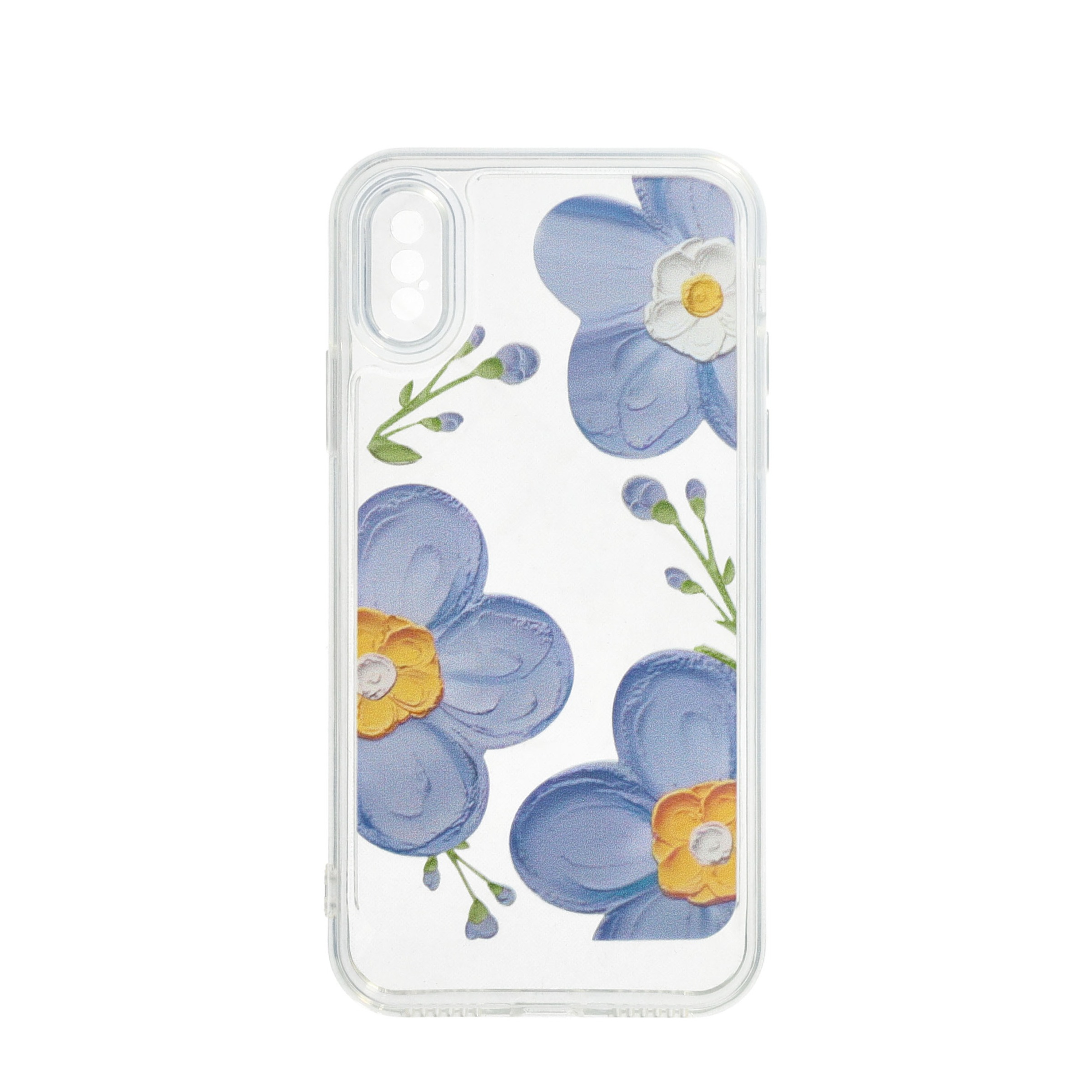 iPhone Xs / X coque en caoutchouc en protection de caméra - Fleurs violettes