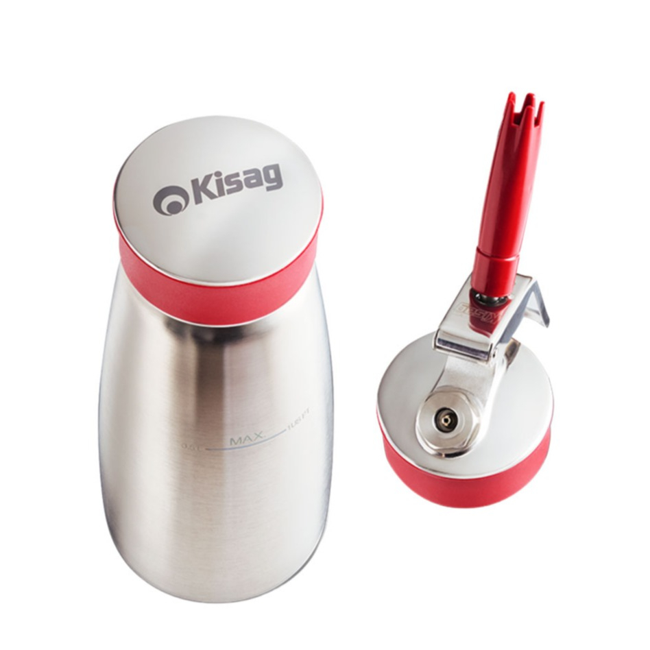 Avec le Kisag Whipper Cap, tu es parfaitement équipé si tu veux conserver ou transporter tes aliments de manière sûre et propre. La combinaison de haute qualité de métal (acier inoxydable) et de silicone antidérapant veille à ce que ta bouteille de siphon à crème **reste fermée de manière fiable - sans aucune fuite.