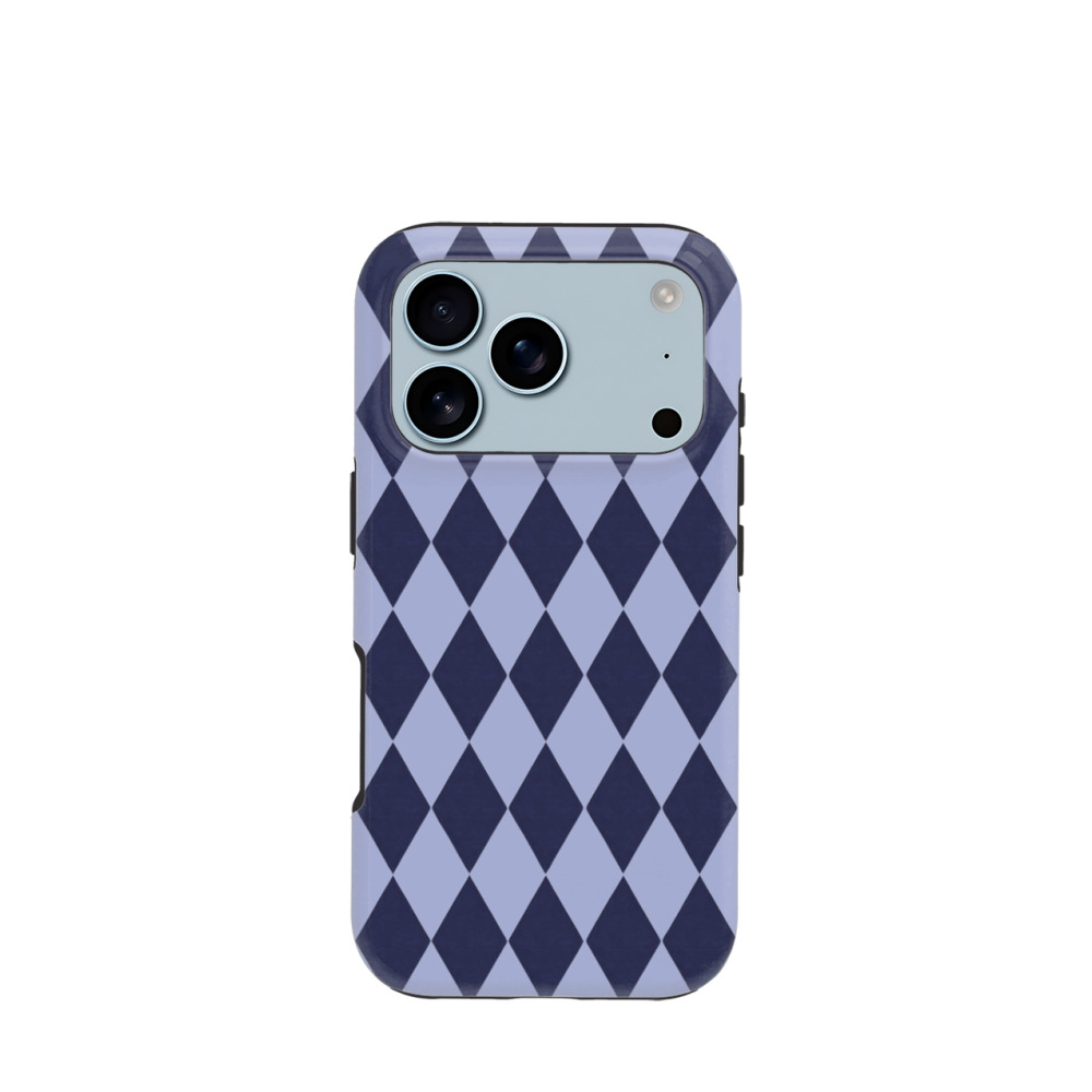 iPhone 17 Pro Hybrid (Kunststoff / Gummi) Hülle Navy Harlequin - Lila-Violett