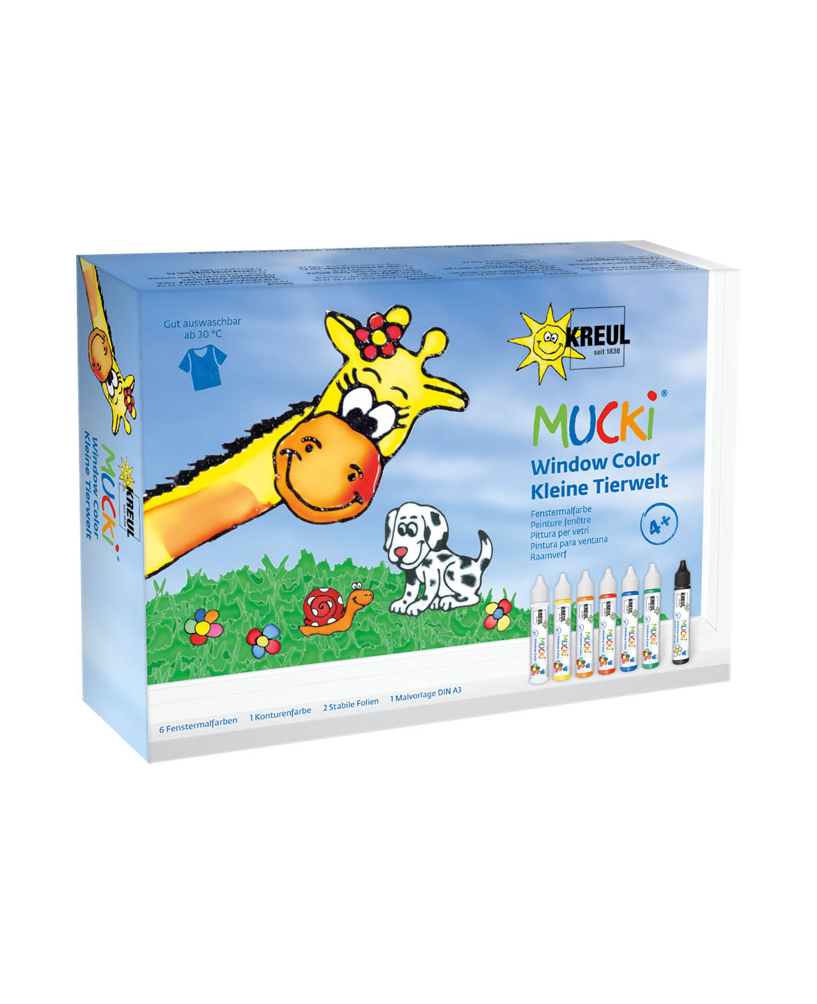 (10 pcs. set) Mucki Window Color peinture pour fenêtres avec modèle de dessin / film - Petit monde des animaux