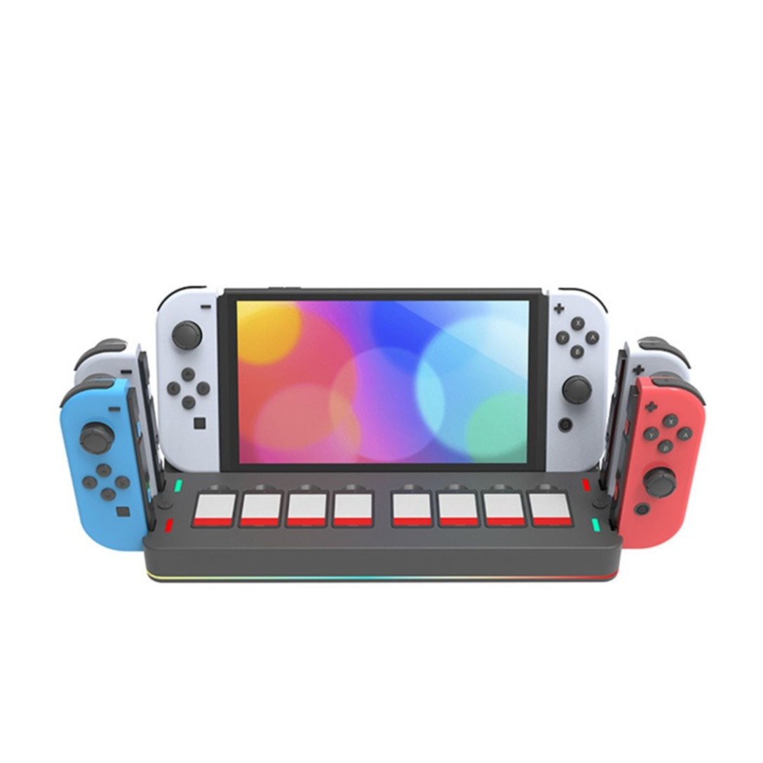 RGB Ladegerät Dockingstation Charging Dock für Nintendo Switch / OLED + 4x Joy-Cons mit Spiele Halterung und HDMI / USB C / USB A Anschluss - Schwarz