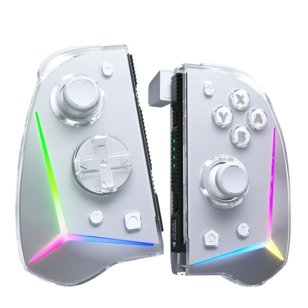 (Lot de 2) Manette de jeu avec fonction turbo + éclairage RGB compatible avec Nintendo Switch / Lite / OLED - Blanc