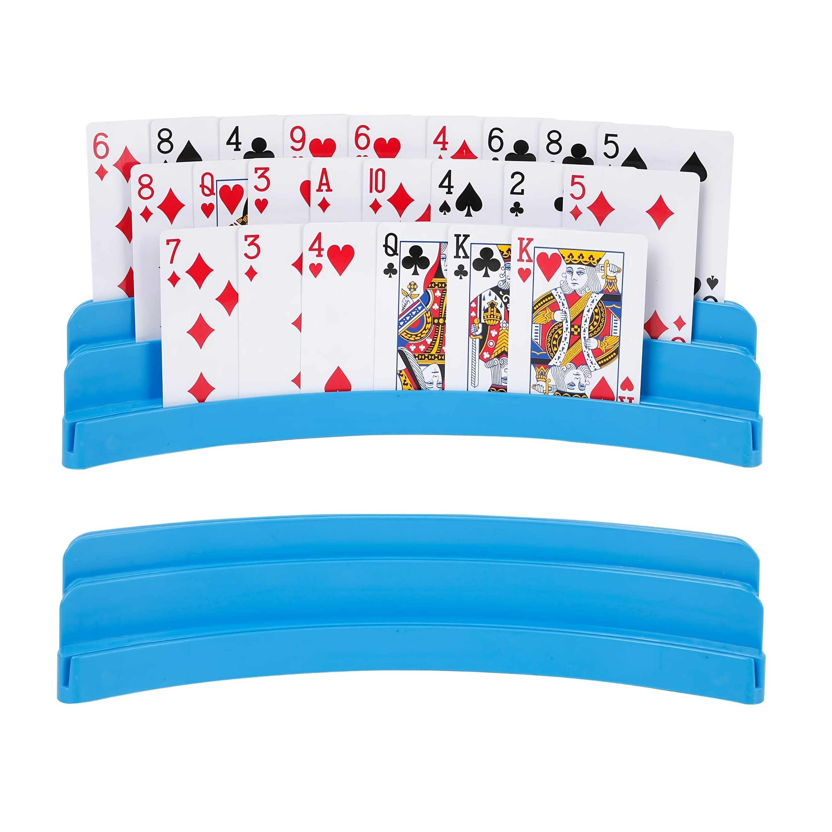 (Lot de 2) Support de cartes à jouer en plastique Table Présentoir de cartes à jouer avec 3 rangées - Bleu