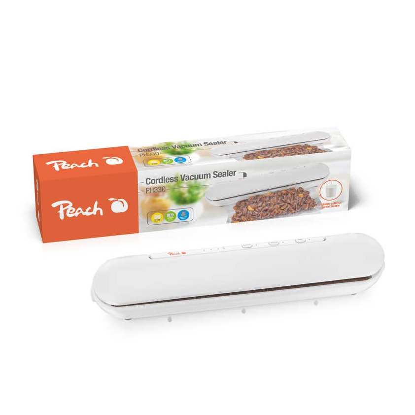 Avec l'appareil de mise sous vide To-Go! de Peach, tu aménages ta cuisine de manière numérique et sans fil. La batterie puissante de la machine sous vide permet environ 40 cycles de vide à pleine charge. Mode automatique, manuel ou scellage - c'est toi qui décides. Idéal pour les aliments délicats ou même les liquides.