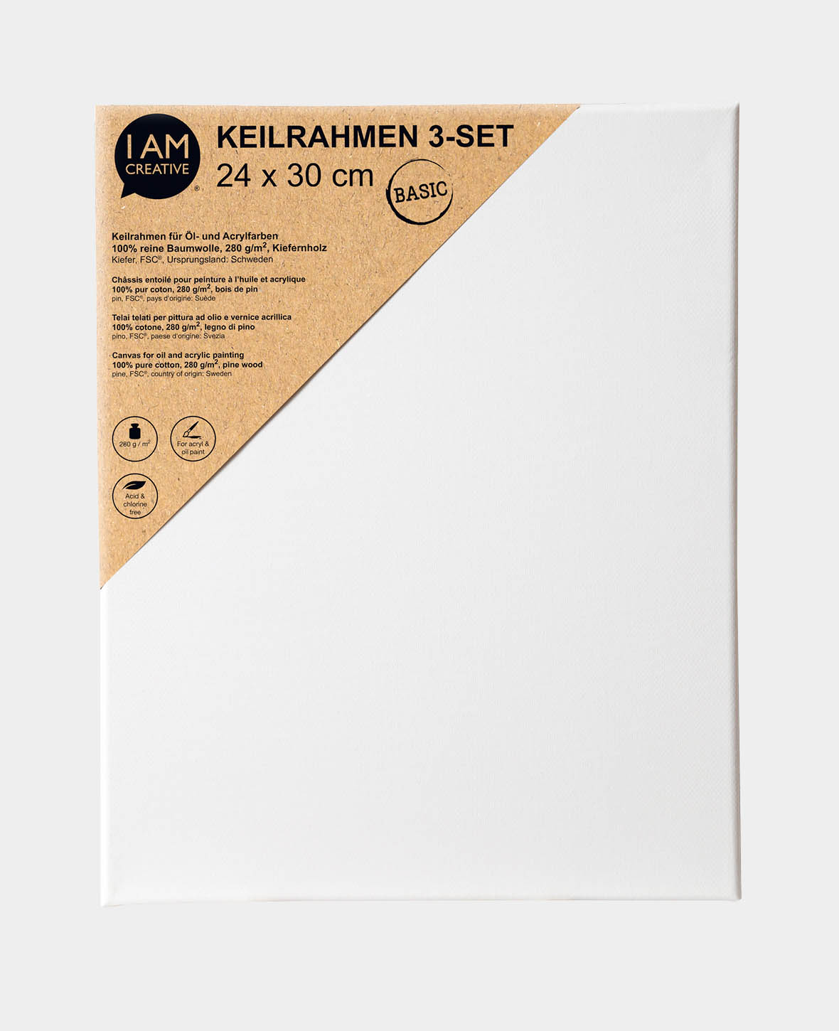 Donne vie à ton projet artistique avec ce set de 3 toiles I AM CREATIVE. Ta peinture sera parfaitement mise en valeur sur cette toile 100% pur coton. La couleur blanche garantit l'éclat de tes couleurs et met pleinement en valeur la beauté de ton œuvre d'art.