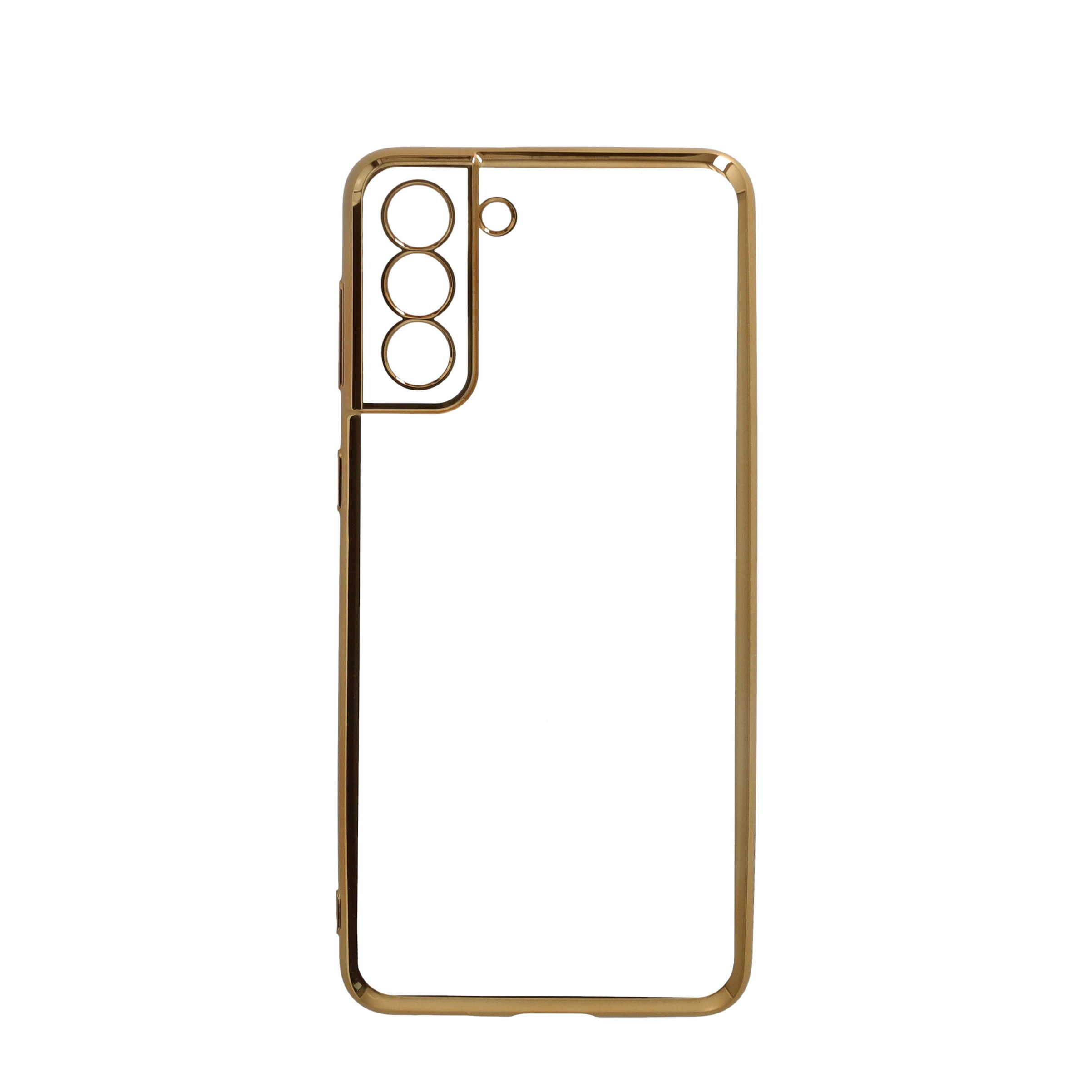 #manufacturer# - Samsung Galaxy S21+ Plus 5G Housse en caoutchouc Cadre galvanisé + protection appareil photo - Transparent / Or
