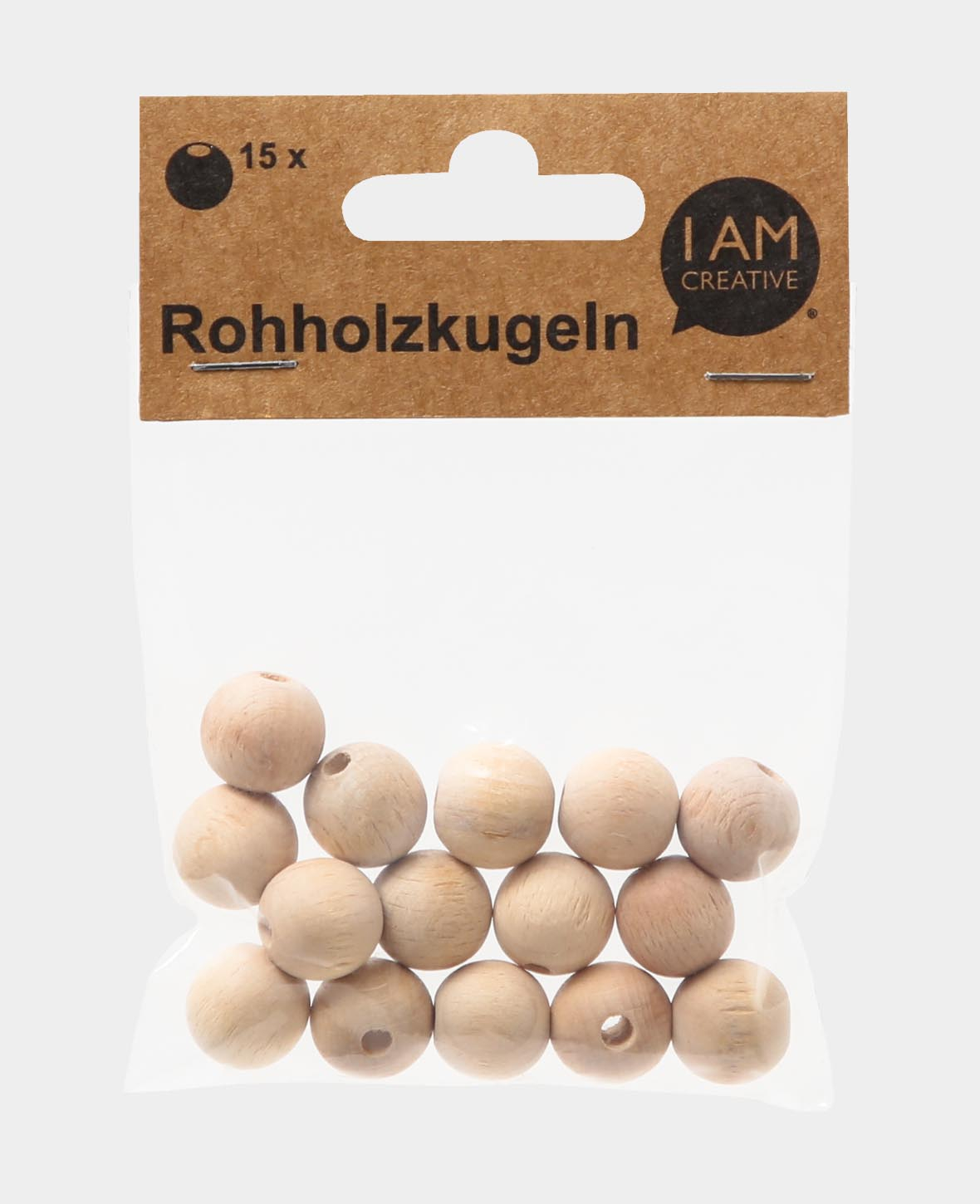 %manufacturer# - (set de 15) boules en bois brut Ø15mm perles en bois DIY accessoires de bricolage - naturel