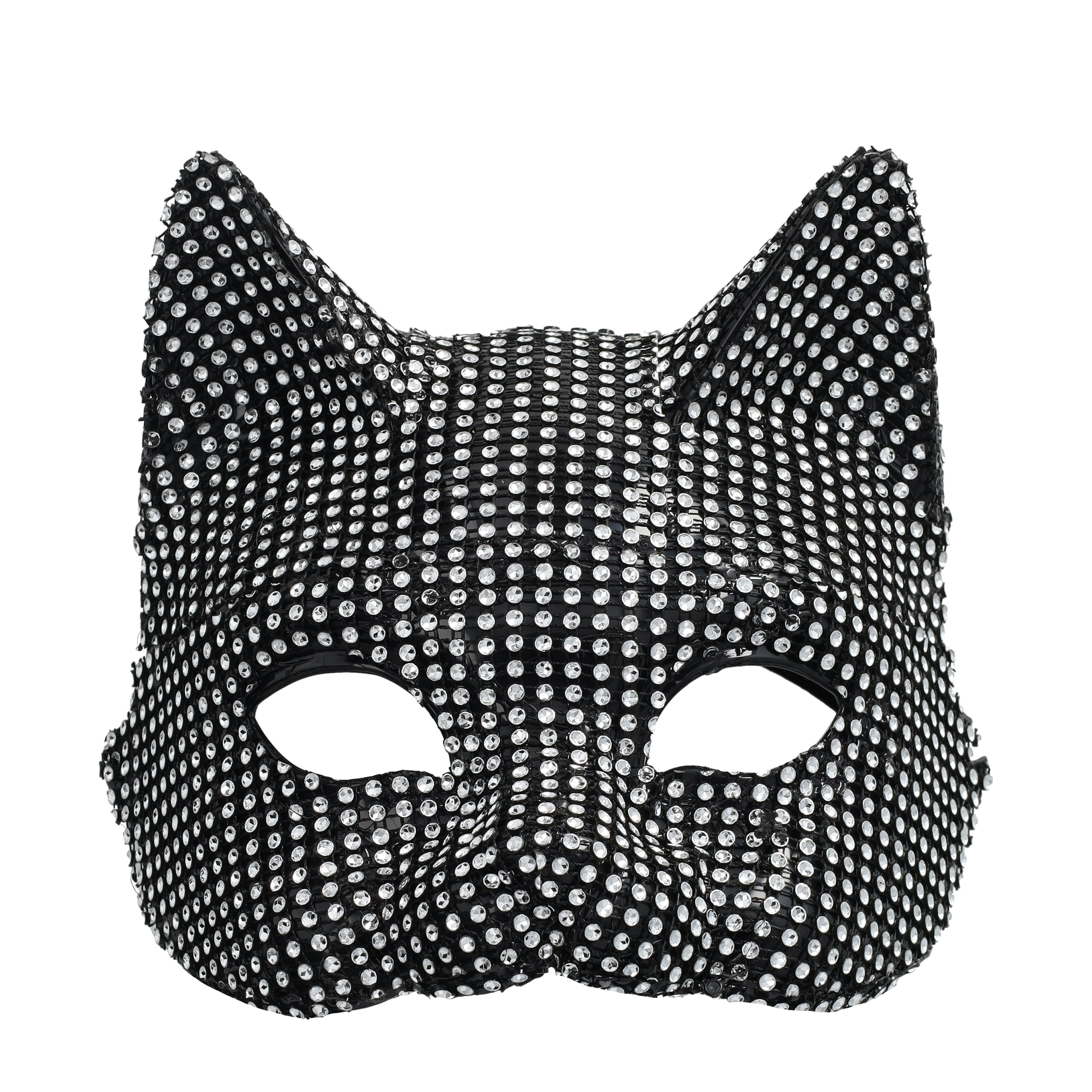 Masque de chat Demi-masque de carnaval Accessoires de costume Devise PARTY Accessoire Halloween Photo Requisite avec strass - Noir / Argent