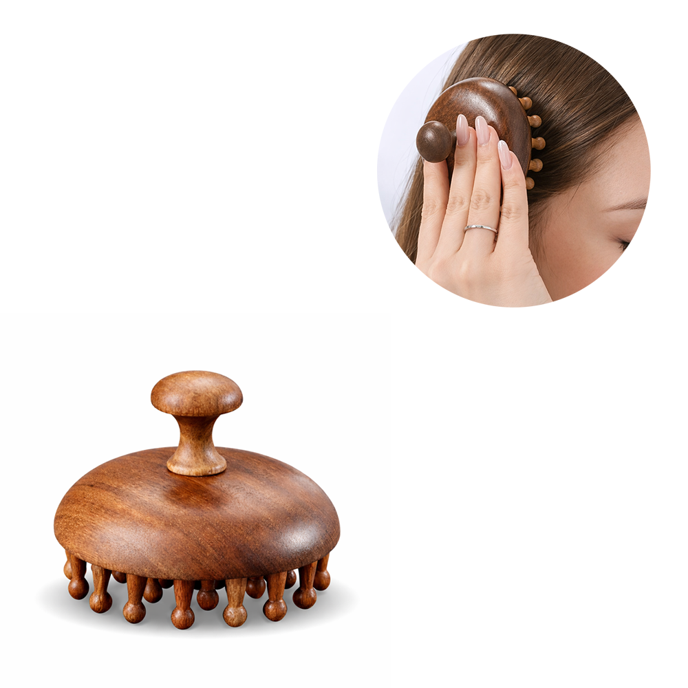 - Brosse manuelle de massage du cuir chevelu en bois de santal*