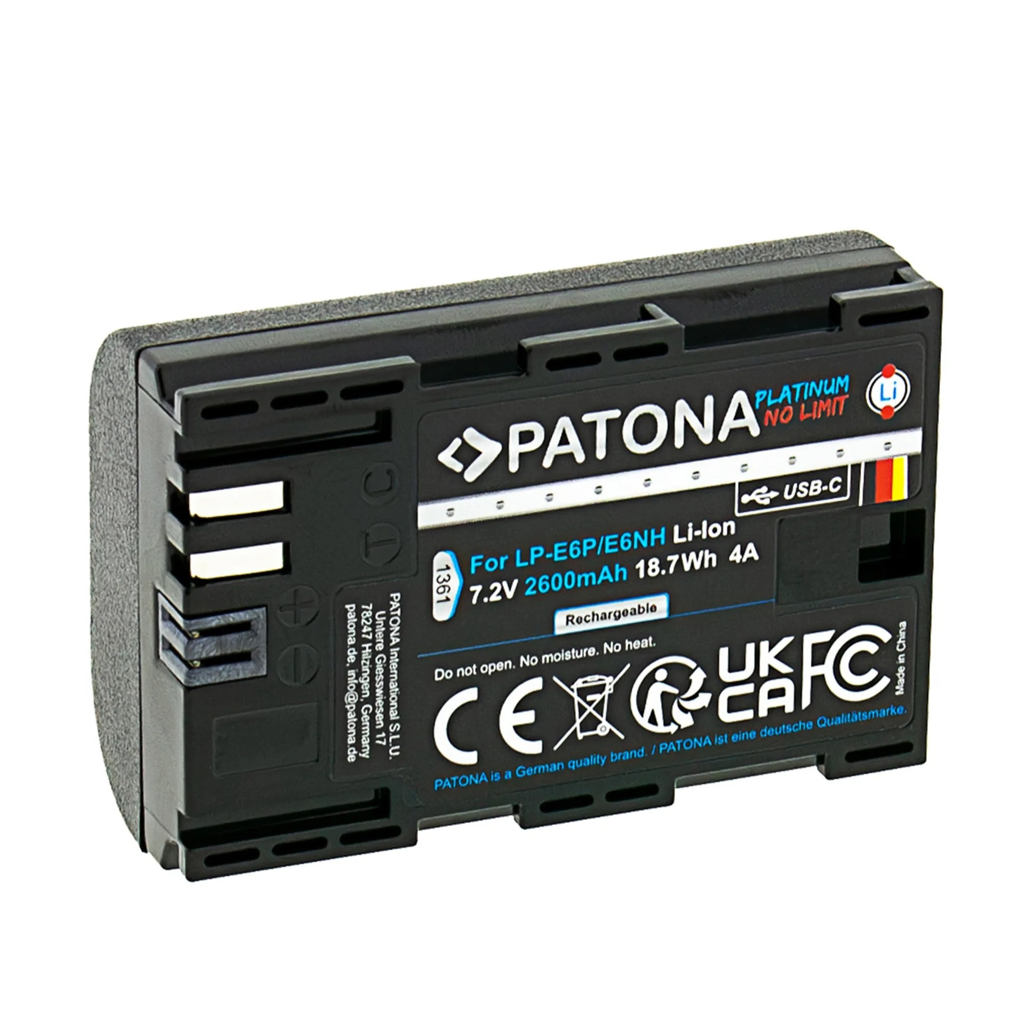1 x Patona - Platinum Canon LP-E6P Batterie USB-C