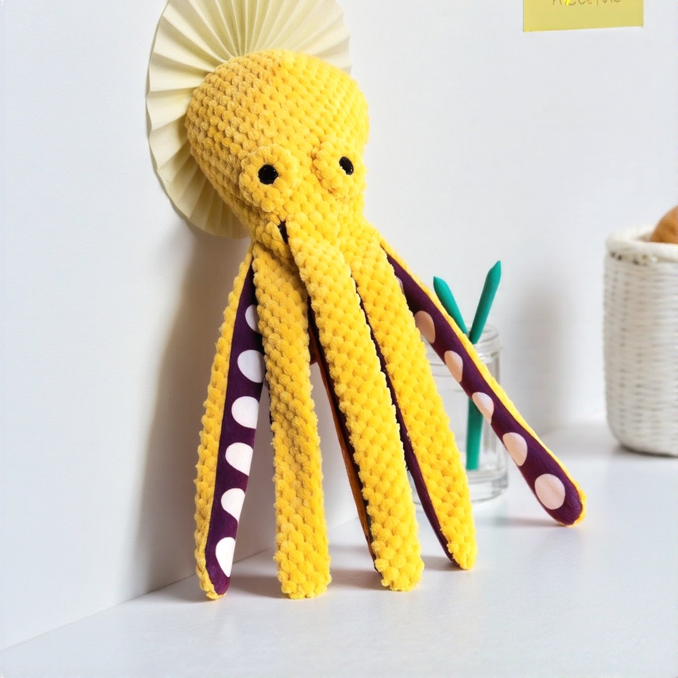 Peluche Chien Jouet Grinçant Pieuvre Interactive Crépitante Jeu de Mâcher pour Animaux de Compagnie - Jaune