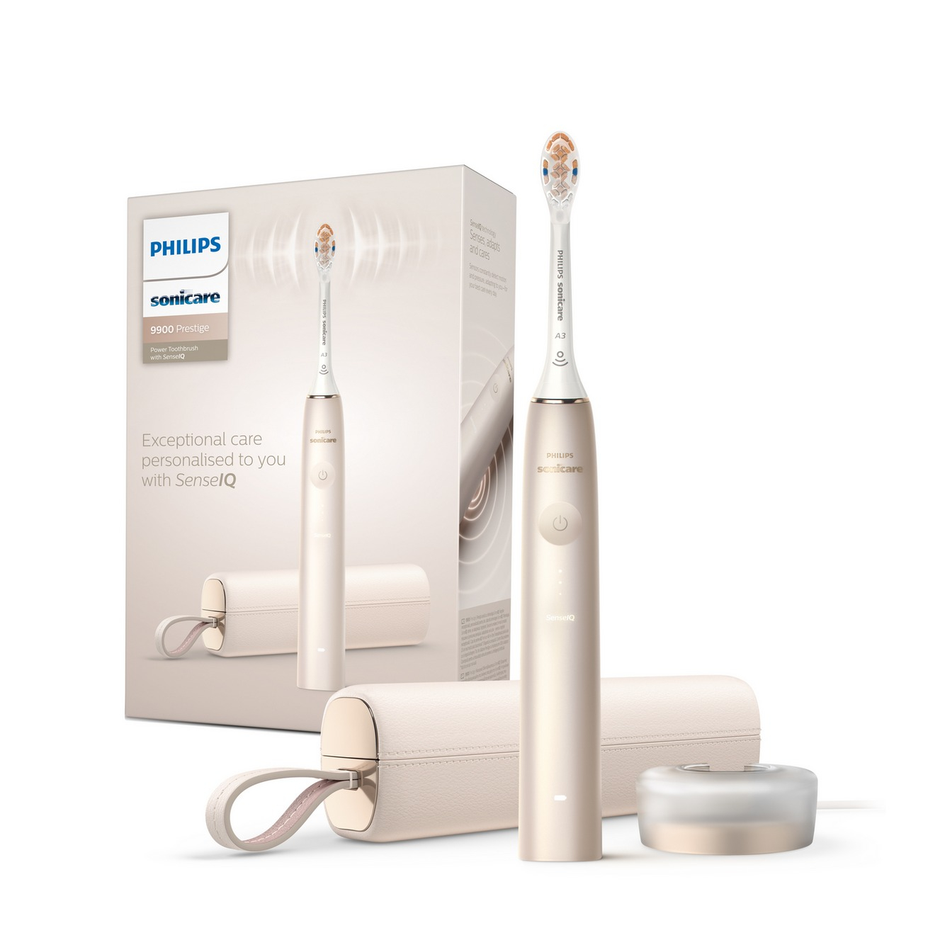 Sonicare DiamondClean 9000 Prestige Brosse à dents électrique sonique avec chargeur inductif + étui de voyage - Champagne