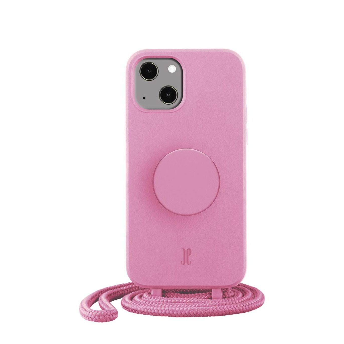 (par Just Elegance) iPhone 14 PopGrip 3in1 Etui en caoutchouc Necklace + chaîne pour téléphone portable (150cm) + PopSockets (30142) - Pastel Pink