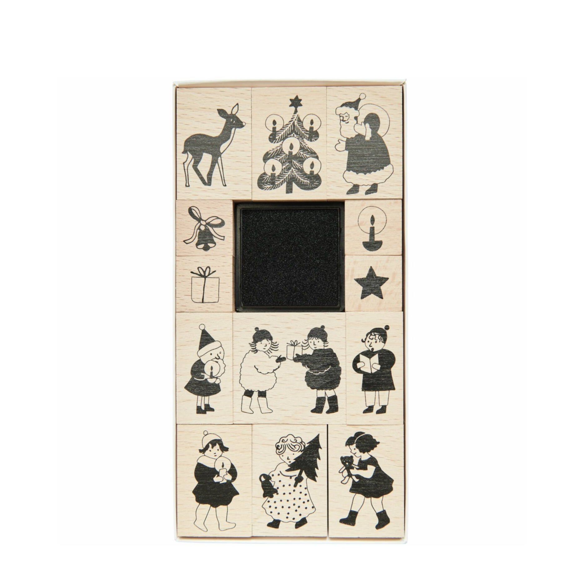 (14 pcs.) Kit de tampons de Noël en bois DIY Cartes / Lettre Décoration Christmas Tampon encreur inclus (302359) - Marché de Noël